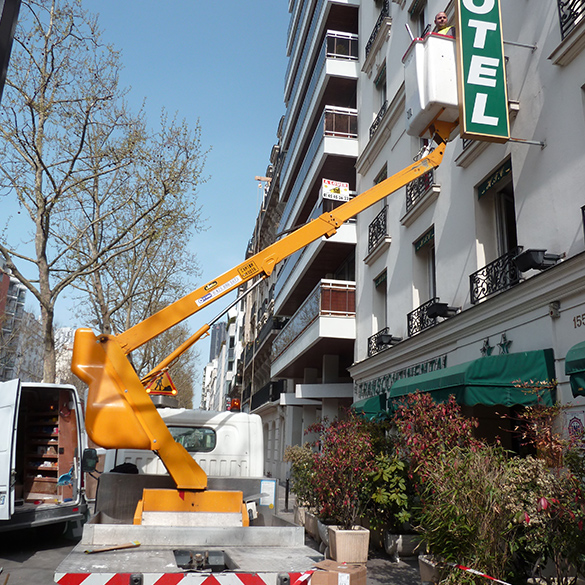 Les poseurs de Réso Pose détiennent le permis nacelle, indispensable pour les poses en hauteur. Nous assurons tout type de pose en hauteur sur nacelle, échafaudage et par corde